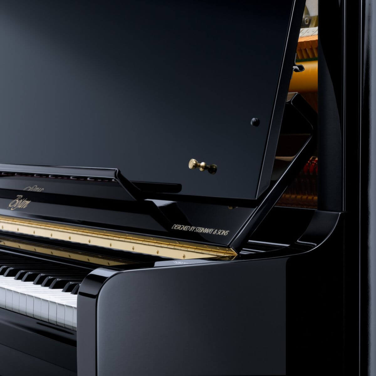 STEINWAY thiết kê độc đáo và độc quyền cho cả Boston và Essex piano. Thiết kế Wide-tail (đuôi rộng) cho phép diện tích thùng đàn lớn hơn 6%. Kết quả là âm thanh sẽ mạnh mẽ hơn, dày hơn và lớn hơn so với một cây đàn cùng kích cỡ.